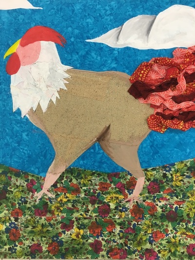 Erin Kirkpatrick is a senior who is immensely grateful for her time at RBR and incredibly talented. Her showcase piece for the spring issue is “Rooster”, a mixed media work of paint and fabric.