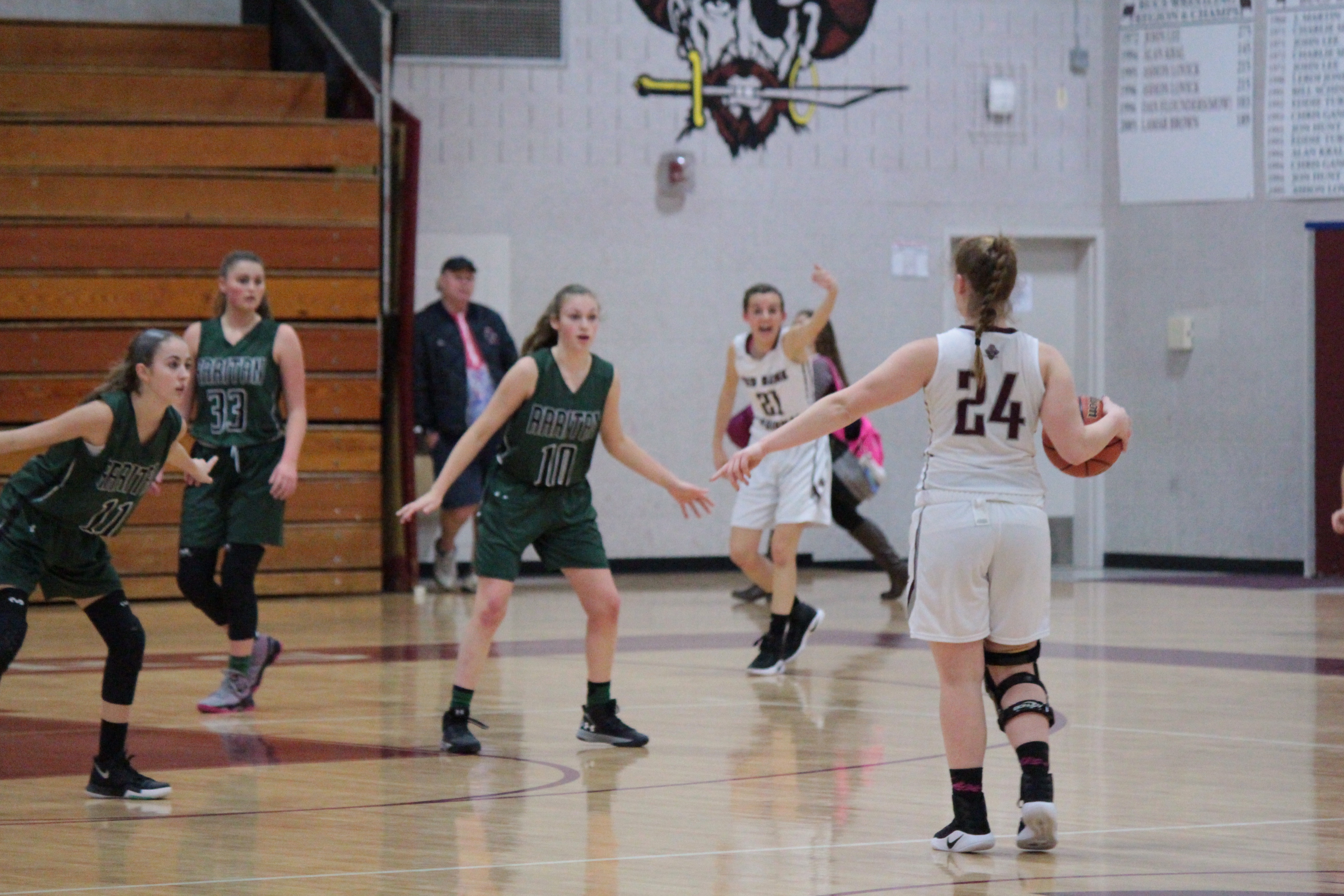 Grace Dengler (#21) and Mary Vilardi (#24) during Friday's win over Raritan.
